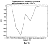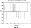 На Фиг.4 показан суммарный ток ISUM аварийного фидера для периода, равного около 1,2 с. На Фиг.5 показана нулевая последовательность напряжения U0 распределительной сети для того же периода времени. Фиг.4 и 5 ясно показывают явление, типичное для неустойчивого (прерывистого) замыкания на землю, где во время измерения суммарного тока ISUM имеется множество аварийных импульсов, повторяющихся в течение очень короткого периода времени, и где при измерении нулевой последовательности напряжения U0 происходит быстрый рост величины нулевой последовательности напряжения в начальный момент неустойчивого (прерывистого) замыкания на землю, а затем медленный спад неустойчивого (прерывистого) замыкания на землю до появления следующего аварийного случая, когда вновь начнется рост величины нулевой последовательности напряжения. На Фиг.6 показана часть Фиг.4, которая иллюстрирует первые четыре суммарных импульса тока. На Фиг.7, в свою очередь, показана часть Фиг.6, которая иллюстрирует второй по очереди суммарный импульс тока аварийного фидера. Далее на Фиг.8 показано изменение в нулевой последовательности напряжения, соответствующее импульсу суммарного тока Фиг.7. Использованная в измерениях пробная частота на Фиг.4-8 равна 50 кГц. На Фиг.9 показан импульс суммарного тока Фиг.7, где пробная частота равна 4,16 кГц.