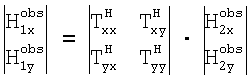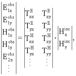 где представляют собой два ортогональных горизонтальных независимых магнитных поля, представляющих равномерное поле источника, а и представляют наблюдаемые электрические поля и магнитные поля, соответственно, на n-ом местоположении в i-ом направлении.