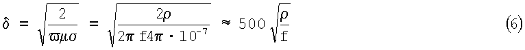 Поля плоских волн на поверхности диффундируют в почву с амплитудами, затухающими экспоненциально с глубиной. Низкочастотные волны проникают более глубоко в почву, чем более высокочастотные волны; это эффект глубины проникновения поля. Глубина проникновения, , представляет собой глубину, на которой плоская волна затухает до значения 1/е от ее величины на поверхности. Глубина проникновения задается как: