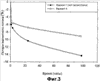 В другом своем аспекте настоящее изобретение предусматривает быстрозатвердевшие. магнитные материалы типа редкоземельный металл-переходной металл-бор (RE-TM-B) с защитным пассивирующим покрытием при воздействии высокой температуры и агрессивной окружающей среды. Магниты на связке формируют из магнитных порошков с покрытиями, которые были уплотнены (спрессованы) и впоследствии отверждены. Полученные магниты на связке, которые возникают в результате процесса нанесения жидкого покрытия, включающего в себя органотитанатные связывающие агенты в эпоксидной системе, показывают значительное улучшение потерь магнитного потока в результате старения по сравнению с магнитами, изготовленными без связывающего агента, при температурах 180°С или выше. Фиг. 1 показывает сильный контраст по потерям магнитного потока в результате старения при 180°С через 100 часов между магнитами (работающими на линии загрузки РС=2), приготовленными в отсутствие связывающих агентов (нет СА), и теми, которые были подвергнуты нанесению жидкого покрытия с органотитанатным или органоцирконатным агентом (LICA 38, KZ OPPR, KR 55). Присутствие такого органического связывающего агента уменьшает степень окисления этих порошков, делая их пригодными для многочисленных областей применения с высокими температурами/коррозионными окружающими средами.