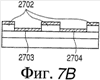 (b) Поддерживая подложку в камере, канальный слой 2701 покрывают маской 2702, и на нее наслаивают другую InGaO3(ZnO)4 пленку, имеющую более высокую проводимость, и золотую пленку, каждая толщиной 30 нм, способом импульсного лазерного осаждения при парциальном давлении кислорода ниже 1 Па в камере для формирования электрода 2703 стока и электрода 2704 истока. При волочении не проводят различия между InGaO3(ZnO)4 пленкой и золотой пленкой.