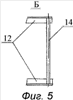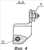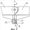 В рабочем положении выкатное устройство 5 с выключателем 6 перемещается на неподвижной части направляющих 8 до соединения штепсельных соединителей 7 с неподвижными контактами 2 силовой цепи распределительного устройства и фиксируется. Консольная часть 12 направляющих, выходящих за пределы корпуса, поворачивается относительно неподвижной на угол 90° вокруг оси 9 и закрепляется. Дверь шкафа закрывается и распределительное устройство готово к работе. При необходимости обслуживания выключателя отключается напряжение, открывается дверь 3 и за стяжку 14 консольная часть направляющих 12 поворачивается вокруг осей 9 до соприкосновения упорных площадок 10 и 13. При этом штифты 11, установленные на площадках 10, расположенные перпендикулярно осям 9, входят в отверстия «В» площадки 13. Площадки 10 и 13, соприкасаясь, обеспечивают горизонтальное расположение направляющих, их стыковку и продолжение друг друга. При этом консольная (поворотная) часть направляющих располагается за пределами оболочки. Штифты фиксируют направляющие и не позволяют им проворачиваться под тяжестью выкатного устройства с выключателем. Стяжка 14 обеспечивает параллельность консольной части направляющих и одновременный перевод их в горизонтальное положение, и наоборот.