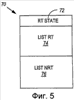 Теперь обратимся к еще одному варианту осуществления, показанному на Фиг.5, где сообщение 70 узловой IG опять содержит флаг 72, который обозначает, включено или выключено состояние ограничения транзита узла. В этом случае одно или более полей TLV в виде двух списков 74 и 76 ограничения транзита также формируют часть сообщения 70 узловой IG. Список 74 ограничения транзита, обозначенный ” LIST RT”, используется в случае, когда флаг 72 обозначает, что состояние ограничения транзита объявляющего узла включено. Список 76 ограничения транзита, обозначенный “LIST NRT”, используется в случае, когда флаг 72 обозначает, что состояние ограничения транзита объявляющего узла выключено. Как и в случае соответствующих примеров сообщений 50 и 60 узловых IG, списки 74 и 76 ограничения транзита могут либо обозначать исключения или определения для каждого из состояний ограничения транзита объявляющего узла, о котором идет речь, либо обозначать определения для каждого из них, с аналогичными результатами, наступающими в случае, когда сообщение установления пути на основе политик определяет любой из занесенных в списки потоков трафика, соединениями или вызовами. Специалисты в данной области техники поймут, что можно применять структуры данных, правила и технологии, аналогичные тем, что определены ранее по отношению к варианту осуществления, показанному на Фиг.3, для того, чтобы реализовать данные два списка 74 и 76 ограничения транзита, и для того, чтобы сравнивать с ними переданную политику.