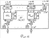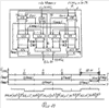 Временные диаграммы работы блоков – на фиг.21. Блоки 17, 18 преобразуют коды с параллельных в последовательные с заменой в них представление единиц с импульсов на положительные и отрицательные полисинусоиды. На первый вход формирователя 17 кодов поступают коды с АЦП 14, на второй с АЦП 15, на третий с АЦП 10 коды звука и на четвертый вход код сигнала ССИ с блока 19. 9-разрядные коды поступают на первые входы элементов И блоков 36, 41, на вторые входы которых поступают последовательно 9 импульсов с выходов СРИ 40 и 45, сигнал Uп пуска на которые поступает с первого ключа 52. С выходов блоков 36, 41 импульсы кодов последовательно через элементы ИЛИ 37, 38 и 42, 43 поступают на управляющие входы выходных ключей соответственно 39, 44 и открывают их на время своей длительности 18 нс Выходной ключ 39 в открытом состоянии пропускает одну положительную полусинусоиду на выход, выходной ключ 44 в открытом состоянии пропускает на выход одну отрицательную полусинусоиду. Выходы ключей объединены, являются выходом /первым/ блока 17, на выходе которого выходной сигнал представляется полными или неполными синусоидами моночастоты 56,25 МГц со стабильностью 10-7. Сигналы с первого выхода блока 17 модулируют несущую частоту в блоке 25 /фиг.1/. Очередность формирования сигналов ССИ, кодов строки и звука 3в1 определяют сигналы с дешифратора 55. Счетчик 54 8-разрядный, ведет счет с 1-го по 250 импульсы строки частоты 6,25 МГц. При коде 00000001 импульс с первого выхода дешифратора 55 открывает ключ 52 и закрывает ключ 53. При этом идет формирование кодов строки со второго отсчета по 247-й. С приходом на вход счетчика 54 247-го импульса сигнал со второго выхода дешифратора 55 закрывает ключ 52, открывает ключ 53, при этом формируются три кода звука 248, 249, 250. Сигналы разрядов с 1 по 8 кода звука поступают на первые входы блока 46, с него через элементы ИЛИ 47 и 38 на управляющий вход выходного ключа 39. Сигналы разрядов с 9 по 16 кода звука поступают на первые входы блока 49, с него через элементы ИЛИ 50, 43 на управляющий вход выходного ключа 44. С приходом в счетчик 54 250-го импульса строки с третьего выхода дешифратора 55 следует сигнал, являющийся вторым выходом блока 17, поступает как сигнал Uп пуска на вход первого СРИ 19 и запускает его в работу, с выхода которого 9-разрядный код ССИ поступает на третьи входы элементов ИЛИ 38, 43. На первый вход второго формирователя 18 кодов поступают 9-разрядные коды сигнала В на первые входы блока 56, на вторые входы которого поступают девять импульсов с СРИ 60. С выхода блока 58 импульсы кода последовательно поступают на вход выходного ключа 59, который в открытом состоянии пропускает одну положительную полусинусоиду. Коды сигнала В формируются аналогично, как и в формирователе 17 со второго по 247 отсчеты строки. С приходом в счетчик 71 247-го импульса сигнал со второго выхода дешифратора 72 закрывает ключ 69, открывает ключ 70: формируются три кода 3в2 звука 248, 249, 250. По окончании периода кадра в СРИ 20 /фиг.1/ поступает сигнал 25 Гц Uп, запускающий его в работу. С блока 20 на второй вход элемента ИЛИ 63 и на третий вход элемента ИЛИ 58 синхронно поступают коды КСИ и ССИ. Код КСИ является первым кодом только в первой строке каждого кадра, код ССИ является первым кодом в каждой строке. С приходом в счетчик 71 /54/ первого импульса следующей строки дешифратор 72 /55/ с первого выхода закрывает ключ 70 /63/ и открывает ключ 69 /52/, след
