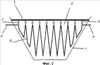 За счет того, что несущая балка 3 находится сверху, а крепления 6, содержащие изоляторы 7, отрезки металлических прутов 5 находятся под несущей балкой 3, обеспечивается защита конструкции устройства от падающих сверху глыб.