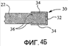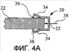 На фиг.3 представлен вид с торца концевой муфты 30 для присоединения к кабелю, подходящей для создания электропроводного соединения с торцом нагревательного кабеля. Предпочтительно подобное соединение выполняется на каждом торце кабеля. На фиг.4А показано поперечное сечение концевой муфты, надетой на нагревательный элемент 22, расположенный на одном торце кабеля 20, на фиг.4Б показана концевая муфта, установленная на место. Концевая муфта соединяется с проводящим соединительным проводом, который, в свою очередь, соединяется с источником электропитания, подходящим для подачи энергии для работы обогревателя.