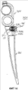– фиг.3: вид сбоку зуба во втором варианте, причем крепежный и стержнеобразный захватный элементы еще отделены друг от друга, однако могут быть разъемно соединены между собой;