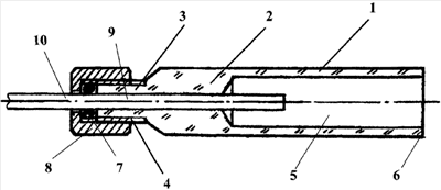 Корпус-упор может быть выполнен, например, из полиметилметакрилата, фоторопласта-4, фиксирующее кольцо – из силикона, стопорная гайка – из нержавеющей стали.