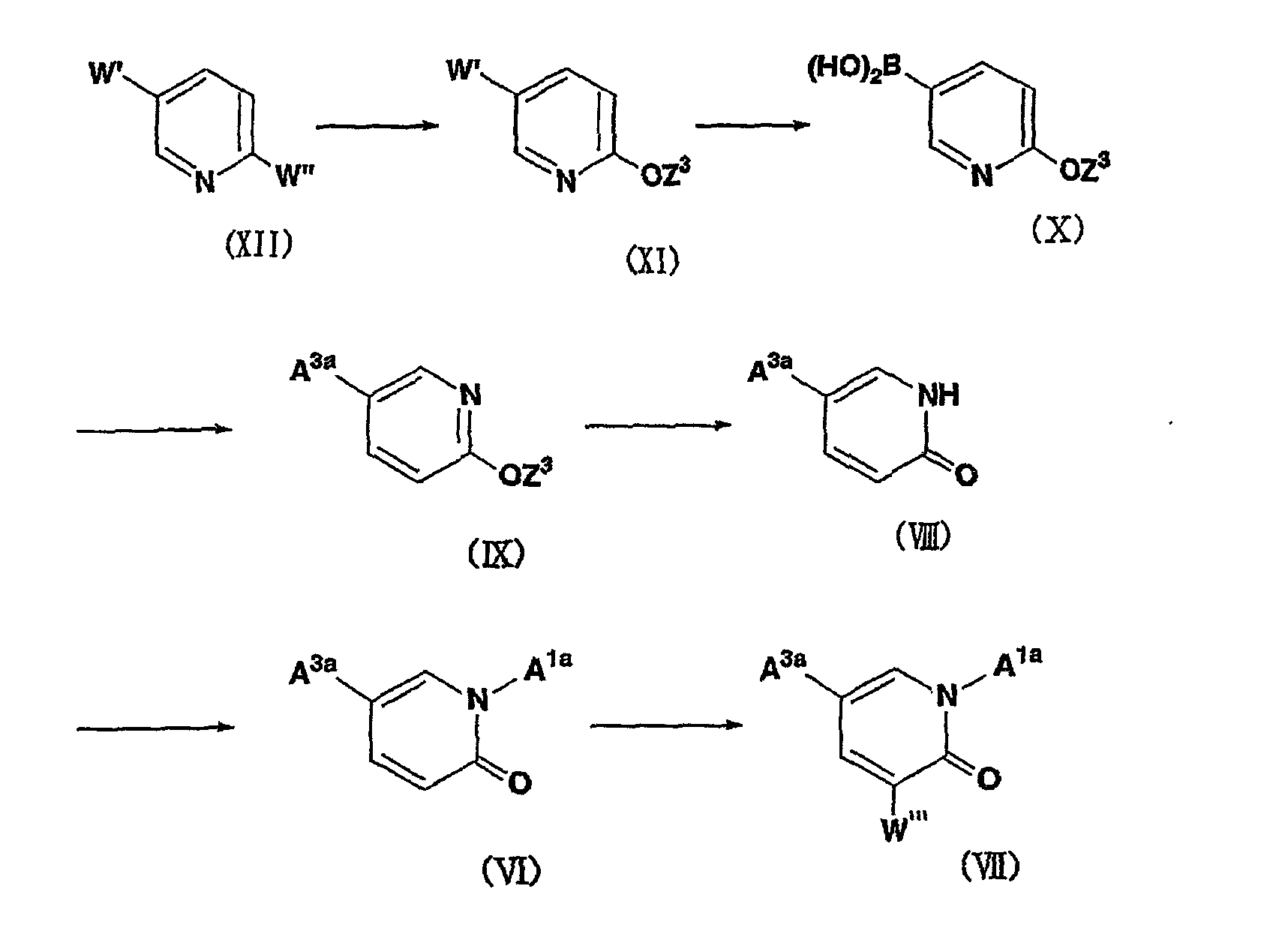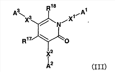 которая может быть замещенной; (19) соединению согласно вышеупомянутому (15), его соли или его гидратам, где местом присоединения заместителя при A1, A2 и/или A3 является -положение углеродного атома, связанного с группой X1, X2 и X3 соответственно; (20) соединению согласно вышеупомянутому (15), его соли или его гидратам, где X1, X2 и X3 представляют простые связи; (21) соединению согласно вышеупомянутому (15), его соли или его гидратам, где R17 и R18 представляют атомы водорода; (22) соединению согласно вышеупомянутому (1), его соли или его гидратам, которое представляет собой любое одно из соединений, выбранных из 3-(2-цианофенил)-5-(2-метилсульфониламинофенил)-1-фенил-1,2-дигидропиридин-2-она; 3-(2-хлор-3-пиридил)-5-(2-пиридил)-1-фенил-1,2-дигидропиридин-2-она; 3-(2-цианофенил)-5-(2-пиридил)-1-фенил-1,2-дигидропиридин-2-она; 3-(2-цианофенил)-5-(2-пиридил)-1-(3-нитрофенил)-1,2-дигидропиридин-2-она; 3-(2-цианофенил)-5-(2-пиридил)-1-(3-аминофенил)-1,2-дигидропиридин-2-она; 3-(2-цианофенил)-5-(2-пиридил)-1-(3-метилсульфониламинофенил)-1,2-дигидропиридин-2-она; 3-(2-цианофенил)-5-(2-пиридил)-1-(3-метиламинофенил)-1,2-дигидропиридин-2-она; 3-(2-цианофенил)-5-(2-пиридил)-1-(3-диметиламинофенил)-1,2-дигидропиридин-2-она; 3-(2-цианофенил)-5-(2-пиридил)-1-[3-(5-метоксиметил-2-оксазолидинон-3-ил)фенил]-1,2-дигидропиридин-2-она; 3-(2-цианофенил)-5-(2-пиридил)-1-(3-метоксикарбонилфенил)-1,2-дигидропиридин-2-она;