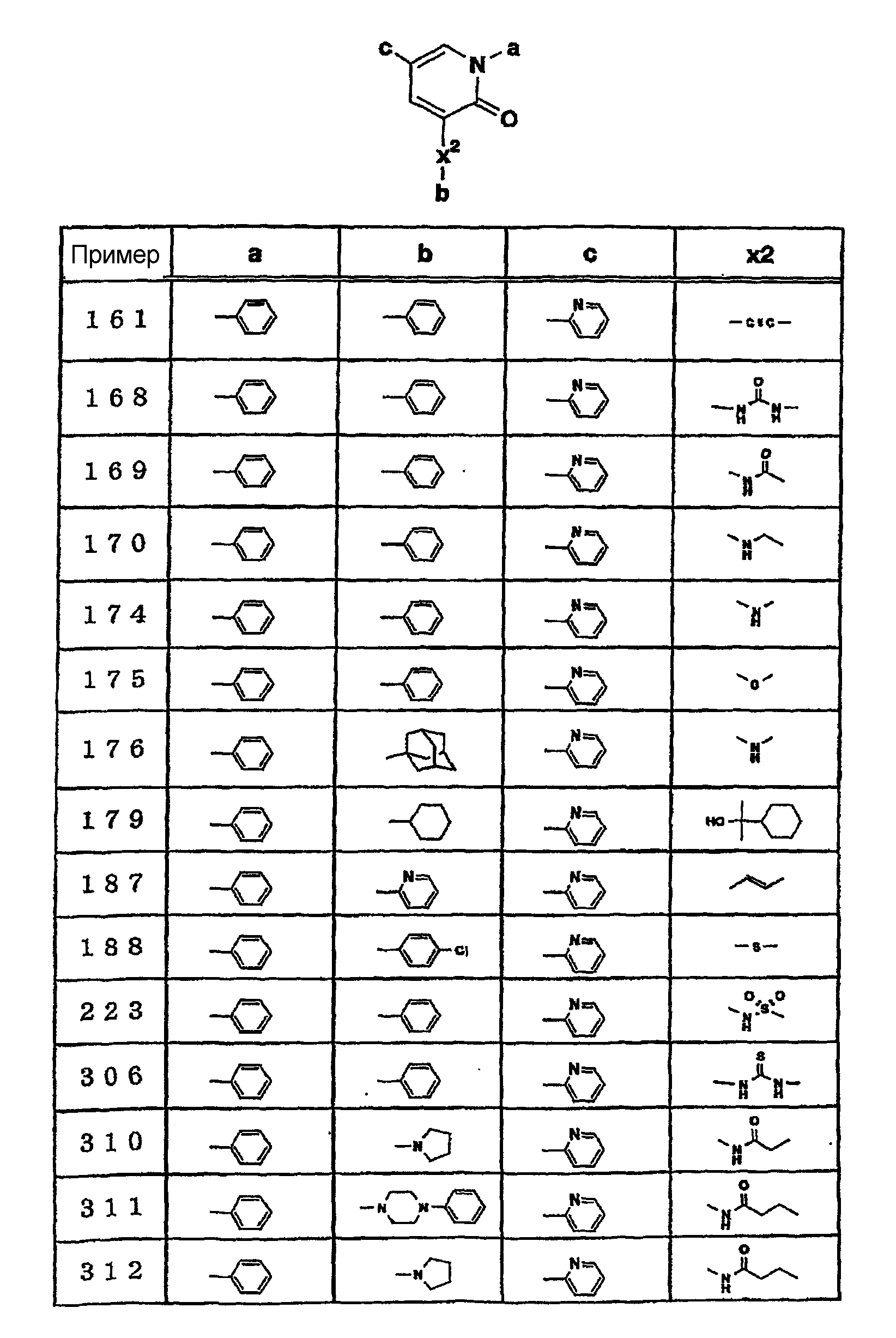 1-(3-аминофенил)-3-(2-цианофенил)-5-(2-пиримидинил)-1,2-дигидропиридин-2-она; 3-(2-цианофенил)-5-(2-пиридил)-1-(3-амино-4-метилфенил)-1,2-дигидропиридин-2-она; 3-(2-цианофенил)-1-(3-диметиламиноэтоксифенил)-5-(2-пиридил)-1,2-дигидропиридин-2-она; 3-(2-цианофенил)-1-(3-пиперидиноэтоксифенил)-5-(2-пиридил)-1,2-дигидропиридин-2-она; 3-(2-цианофенил)-1-(3-пирролидиноэтоксифенил)-5-(2-пиридил)-1,2-дигидропиридин-2-она; 3-(2-цианофенил)-1-(3-диизопропиламиноэтоксифенил)-5-(2-пиридил)-1,2-дигидропиридин-2-она; 3-(2-цианофенил)-1-[3-(4-пиперидинобутокси)фенил]-5-(2-пиридил)-1,2-дигидропиридин-2-она; 3-(2-цианофенил)-1-(4-нитрофенил)-5-(2-пиридил)-1,2-дигидропиридин-2-она; 1-фенил-5-(2-пиридил)-3-(2-тиазолил)-1,2-дигидропиридин-2-она; 3-(2-цианофенил)-1-(3-пиридил)-5-(2-пиримидинил)-1,2-дигидропиридин-2-она; 3-(2-фторпиридин-3-ил)-1-фенил-5-(2-пиримидинил)-1,2-дигидропиридин-2-она;