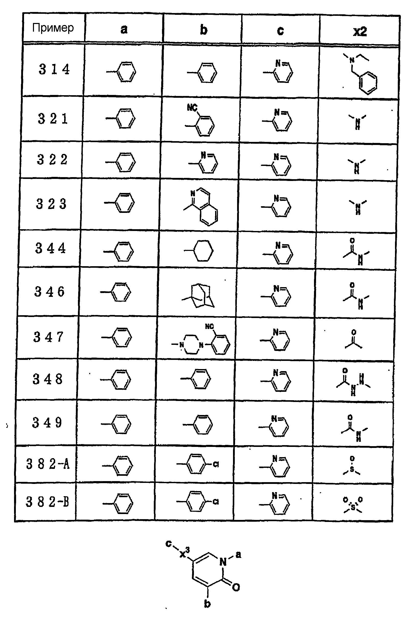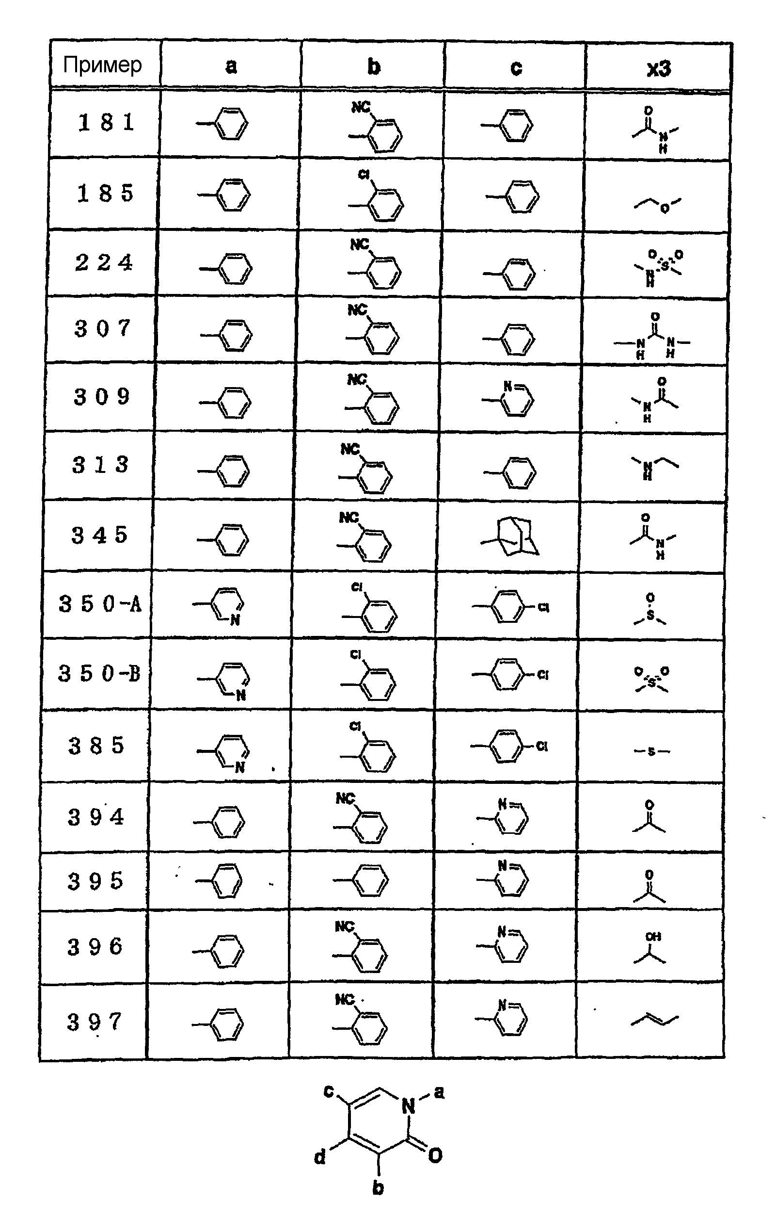 3-(2-цианофенил)-5-(2-пиридил)-1-(3-фторфенил)-1,2-дигидропиридин-2-она; 3-(2-цианофенил)-5-(2-пиридил)-1-(4-метоксифенил)-1,2-дигидропиридин-2-она; 3-(2-цианофенил)-5-(2-пиридил)-1-(3-метоксифенил)-1,2-дигидропиридин-2-она; 3-фенил-5-(2-пиридил)-1-(3-фторфенил)-1,2-дигидропиридин-2-она;