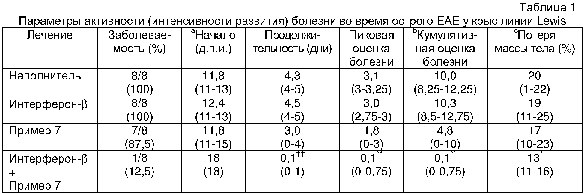 В данном случае показано, что (благодаря достигнутому реверсированию паралича на in vivo модели демиелинизирующего и нейродегенеративного расстройства) имеются клинические преимущества в лечении нейродегенеративных и демиелинизирующих расстройств с использованием комбинации антагониста AMPA и/или каинатного рецепторов с иммунорегуляторным средством, при этом эффективность предлагаемой терапии оказывается выше, чем ожидаемое аддитивное действие любого одного средства из двух.
