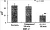 Результаты по степени оккупации бляшек макрофагами, рассчитанные с помощью анализа изображения на фиг.4, показаны на фиг.6. Как показано на фиг.6, степень оккупации макрофагами составляла 33,2 ± 2,2% в контрольной группе, в то время как в группе, получавшей соединение 1 в дозе 100 мг/кг, была достоверно уменьшена до 20,0 ± 1,7% (P <0,01). Напротив, она была достоверно увеличена до 44,0 ± 2,7% (P <0,01) в группе, получавшей CI-1011 в дозе 100 мг/кг.