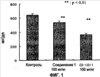 Результаты по степени оккупации бляшек коллагеном, рассчитанные с помощью анализа изображения на фиг.5, показаны на фиг.7. Как показано на фиг.7, степень оккупации коллагеном составляла 9,6 ± 1,1% в контрольной группе, в то время как она была достоверно увеличена до 14,9 ± 1,0% в группе, получавшей соединение 1 в дозе 100 мг/кг (P <0,01). С другой стороны, наблюдалась тенденция к уменьшению до 7,0 ± 0,9% в группе, получавшей CI-1011 в дозе 100 мг/кг.