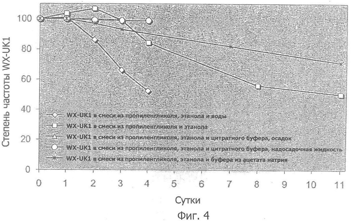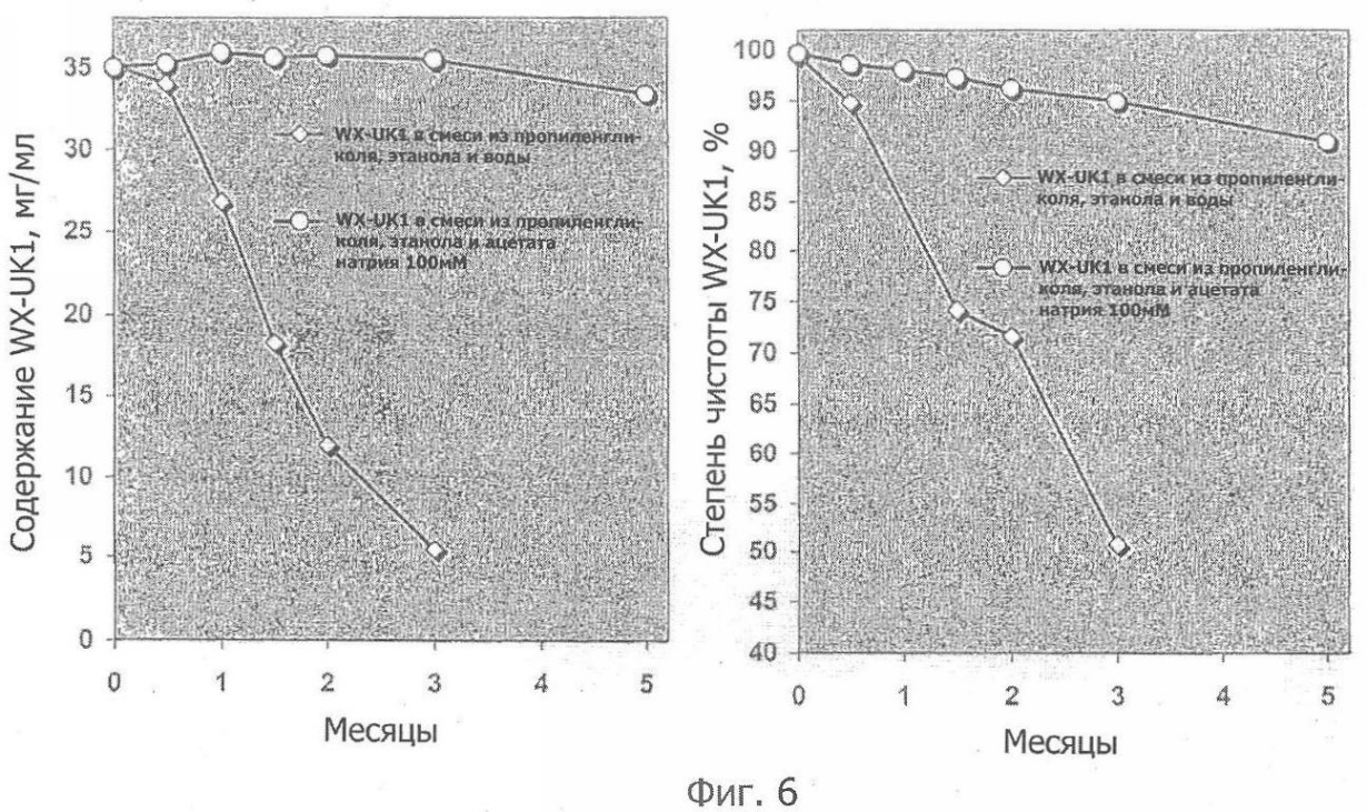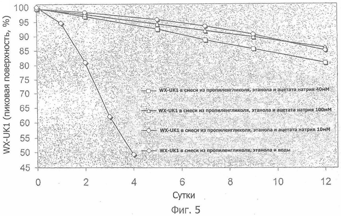 a) WX-UK1, 60 мг/мл в смеси пропиленгликоль/этанол/вода, 40/10/50,