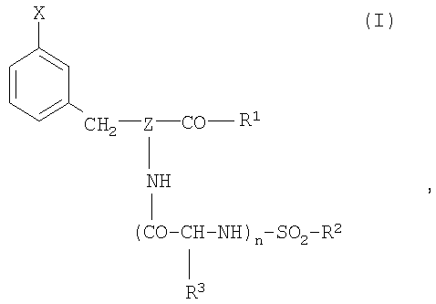 В качестве активного вещества применяется преимущественно производное фенилаланина, являющееся эффективным ингибитором серинпротеазы, в частности, урокиназы. Предпочтительными активными веществами являются соединения амидинофенилаланин и гуанидинофенилаланин, раскрытые в ЕР-А-1 098 651, WO 02/074756 и WO 03/103644. Также предпочтительными являются соединения гидроксиамидинофенилаланин и гидроксигуанидинофенилаланин, описанные в РСТ/ЕР2004/005682. В качестве активных веществ для фармацевтической композиции согласно изобретению служат, в частности, производные 3-амидинофенилаланина или 3-гуанидинофенилаланина новые ингибиторы урокиназы общей формулы I: