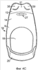 На ФИГ.4А представлен вид сверху средства ухода 6 для кожи/волос вместе с контактным проводником 12, предназначенным для обработки различных поверхностей, соответствующий одному из вариантов реализации настоящего изобретения. На ФИГ.4В представлен вид сбоку средства ухода 6 для кожи/волос, показанного на ФИГ.4А. На ФИГ.4С представлен вид снизу средства ухода 6 для кожи/волос, показанного на ФИГ.4А. Контактный проводник для различных поверхностей 12 имеет такую форму, которая предназначена для его использования при уходе за поверхностями кожи на различных частях тела, таких как руки, ноги, грудь и спина. По сравнению с поверхностями лица, которые являются сравнительно гладкими, поверхности кожи на других частях тела имеют тенденцию резко менять свои очертания. В предпочтительном варианте реализации настоящего изобретения контактный проводник для различных поверхностей 12 содержит пару округлых утолщений 29, 30, разделенных впадиной 31. Утолщения 29, 30 выполнены на переходной части проводника 12 и предназначены для соприкосновения с поверхностями кожи различных очертаний, обеспечивая, таким образом, максимальный контакт проводника 12 с поверхностями кожи на теле.