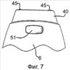 Кроме того, штыри 45, подпружиненные в направлениях, показанных на ФИГ. 6, стыкуются со встречными штырями 46, установленными на накладных электродах. Пружины 47 выталкивают штыри 45 наружу, так что наружные концы штырей 45 становятся заподлицо с наружной поверхностью переднего конца 40 аппарата 41. Выступы или фланцы 48 создают препятствия, ограничивающие перемещение штырей 45 наружу. Вместо пружинного устройства, показанного на ФИГ.6, штыри 45 могут быть более широкими на внешних концах, и могут зацепляться со стопорными фланцами на внешней поверхности, и могут иметь стержни уменьшенного диаметра со спиральными пружинами, навитыми вокруг этих стержней, которые будут выполнять те же функции.