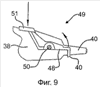 Как показано на ФИГ.9, защелка 43 расположена на одном из концов исполнительного звена 49, имеющего ось вращения 50. Если нажать на другой конец, нажав пружинный колпачок 51, то защелка 43 выйдет из углубления 44 и контактный проводник или накладной электрод будет освобожден или вытолкнут.
