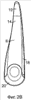 На ФИГ.3А представлен вид сверху средства ухода 6 с прикрепленным к нему переходным проводником 11, соответствующим одному из вариантов реализации настоящего изобретения. На ФИГ.3В представлен вид сбоку средства ухода 6 для кожи/волос, показанного на ФИГ.3А. На ФИГ.3С представлен вид снизу средства ухода 6 для кожи/волос, показанного на ФИГ.3А. Контактный проводник для волос 11 имеет такую форму, которая предназначена для его использования при уходе за поверхностями кожи скальпа и волосами, и предпочтительно содержит зубья, образованные на контактном участке проводника 11, в общем, показанные под номером 28, которые устроены так, чтобы довести до максимума контакт контактного проводника 11 со скальпом и волосами. Для этого кончики зубьев гладко закруглены.