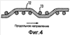 Как ясно видно на фиг.2, нити 12 основы расположены на расстоянии друг от друга в направлении, перпендикулярном к продольному направлению, т.е. в поперечном направлении, в то время как нити 13 утка расположены на расстоянии друг от друга в направлении, параллельном продольному направлению. Кроме того, как видно на фиг.2, части нитей 12 основы, которые протянуты поверх нитей 13 утка, т.е. проступы, выстроены в ряд, наклоненный к продольному направлению машины. Например, проступы 12а-12е, образованные нитями основы, создают диагональный ряд, наклоненный к продольному направлению. Другими словами, первый проступ 12а вместе со вторым проступом, примыкающим к нему в поперечном направлении, например проступом I2b, образуют ряд, наклоненный к продольному направлению. При объединении проступов другим образом точно также образуются диагональные ряды проступов, расположенные под другими углами к продольному направлению.