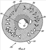 На фиг.2 показан вид в перспективе фланца форсунки с установленным в нем теплозащитным щитком и на фиг.3 показан вид в перспективе теплозащитного щитка. Далее также осуществляется ссылка на составные части форсунки согласно фиг.1. Теплозащитный щиток 24 имеет центральное отверстие 48, через которое воздушно-топливная смесь, направляемая соплом 12, поступает в камеру сгорания. Далее предусмотрено расположенное сбоку отверстие 34 для пропуска воспламеняющего элемента 20. На теплозащитном щитке далее предусмотрены крепежные штифты 44, 46, к которым крепится сопло 12. Далее теплозащитный щиток 24 имеет большое количество отверстий 26, через которые в камеру 22 сгорания может поступать вторичный воздух. На стороне теплозащитного щитка 24, обращенной к камере 22 сгорания, предусмотрены имеющие треугольную форму элементы 28, 30, направляющие воздух. Благодаря различным углам к радиусу теплозащитного щитка 24 они обеспечивают распределение вторичного воздуха. Первая группа элементов, направляющих воздух, частично обозначенных позицией 28, направлена под большим углом к радиусу теплозащитного щитка 24, т.е. имеет по существу или почти тангенциальную направленность. Благодаря такой направленности вторичный воздух, проходящий через соответствующие отверстия 26, направление выходных потоков через которые обозначено стрелкой, с более высоким завихрением мимо отражательного диска 36 переходит в зону выгорания 32. Этот воздух с высоким завихрением направляется в лежащую радиально снаружи область зоны 32 выгорания в задней области камеры 22 сгорания, т.е. в область камеры 22 сгорания, обращенную от теплозащитного щитка 24, и потом под значительным завихрением назад в центральную область в направлении отражательного диска 36. В результате этого происходит успешное перемешивание газообразных компонентов в зоне 32 выгорания. Другая группа элементов, направляющих воздух, направлена под небольшим углом к радиусу теплозащитного щитка 24. Эти элементы, направляющие воздух, частично обозначены позицией 30. Кроме того, эти элементы 30, направляющие воздух, имеют меньший угол к поверхности теплозащитного щитка 24, чем элементы 28, направляющие воздух. В результате прохода через элементы 30, направляющие воздух, направление выходного потока через которые показано другой стрелкой, вторичный воздух подается в центральную область пламени с небольшим завихрением, что, в частности, благоприятствует стабильному поведению при горении.