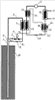 Термин «сопряженный по тепловому потоку с реверсивным холодильным устройством/тепловым насосом» означает, что надземный теплообменник имеет тепловой контакт с конденсатором холодильной установки (источником тепловой энергии) и с испарителем теплового насоса (приемником тепловой энергии), которые предпочтительно соединены в одном устройстве с возможностью реверсивной работы. В качестве холодильной установки и теплового насоса могут быть применены устройства различных типов. В качестве источника/приемника тепловой энергии может быть применен теплообменник, сообщающийся с окружающей средой (например, с воздухом или с водой). Опускная и подъемная трубы подземного теплообменника могут иметь как вертикальные, так и наклонные или горизонтальные участки. Подъемная труба может проходить как внутри опускной трубы, так и вне ее.