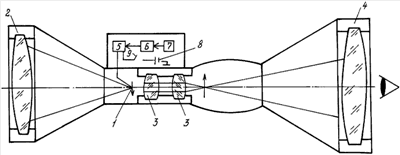Задачей заявленного изобретения является отказ от создания прицельной сетки с помощью прозрачного стекла с нанесенной конфигурацией прицельной сетки и механического устройства ее перемещения и замена их устройствами, в значительной степени повышающими потребительские качества изделия.