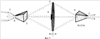 Таким образом, больший торец первого ВОП, действует как совокупность точечных полихроматических источников с различными интенсивностями. Фокусирующая и диспергирующая линза (ФДЛ), центральная область которой закрыта примыкающим к ней непрозрачным экраном, установленная (с возможностью прецизионного перемещения вдоль оптической оси) между большими торцами ВОП на расстоянии, равном 2·f( ) от каждого торца, диспергирует падающие на нее из каждого волокна полихроматические пучки и фокусирует каждый монохроматический пучок с длиной волны в пятно диаметром пд( ), находящееся в плоскости, расположенной на расстоянии 2·f( ) от главной плоскости линзы.