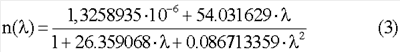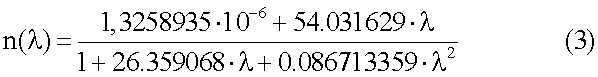 N – число волокон ВОВ выбирается, исходя из необходимого числа точек получаемого моноспектрального изображения, и характеризует достигаемое пространственное разрешение. Выберем N=1.6·105. В качестве материала, из которого изготавливаются волокна ВОВ и ФДЛ выберем хлористое серебро (AgCl), зависимость показателя преломления которого от длины волны можно описать следующим образом [1]: