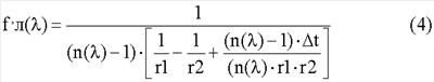 где r1 и r2 – радиусы кривизны поверхностей ФДЛ;