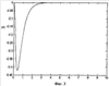 Аналоговая модель компенсационного акселерометра (фиг.2) промоделирована при параметрах: T=0.2 с, T1=0.1 с, T2=0.01 c, K1=0.1, при ширине зоны неоднозначности порогового элемента, включенного в обратную связь, равной 0.01, и результаты моделирования представлены на фиг.3 и фиг.4 (соответственно при входном воздействии, меньшем нуля и большем нуля). Из анализа переходных процессов следует, что устройство устойчиво, устойчивость обеспечивает фильтр верхних частот, включенный в аналоговую отрицательную обратную связь.