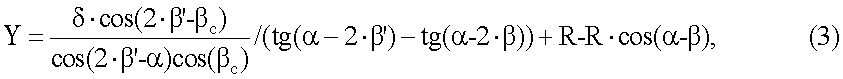 Исходя из вышеизложенного и фиг.2 можно установить, что луч света, идущий через центр хрусталика глаза под углом к линии наблюдения горизонта, отклоняется зеркалом 1 на угол: