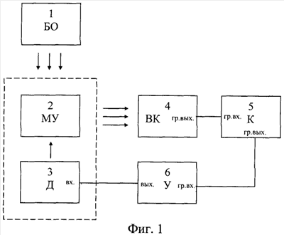 В качестве вычислителя 5 наиболее предпочтительно использовать персональную ЭВМ с USB-входом и параллельным портом (например, портом типа «LPT»). USB-вход используется для подключения видеокамеры 4, параллельный порт – для подключения усилителя-преобразователя 6. Для уменьшения габаритов в качестве вычислителя 6 может быть использована персональная переносная ЭВМ типа «Ноутбук». Для снижения стоимости вычислителя 5 и повышения его надежности, вычислитель 5 может быть реализован на базе микроЭВМ [Системы технического зрения. Под общей редакцией В.И.Сырямкина, В.С.Титова. – Томск: МГП «Раско», 1992. – 362 с.].