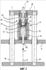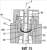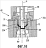 На фиг.15 показано, что фасонная головка 46 содержит внешнюю кольцевую часть 200 и внутреннюю кольцевую часть 202, обе из которых приводятся независимо в направлении W, параллельном оси А. Таким образом возможно перемещать внутреннюю часть 202 и внешнюю часть 200, также как центральный участок 80 и центральный участок 82, таким образом, чтобы было возможно получить заготовку 51, показанную на фиг.2. Более подробно, центральный участок 80 обращен к внутренней части 202 и, по существу, имеет поперечный размер больше, чем у последней. Таким образом, как показано на фиг.16, возможно, чтобы внутренняя часть 202 проникала внутрь окружного участка 82 для того, чтобы образовать в заготовке 204 центральный выступ 206.