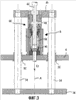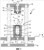 На фиг.1 показана форма 2 для формования контейнера 4 (смотри фиг.6), содержащая пластину основания 6, на которой закреплен внешний корпус 10 пресс-формы 8, который внутри оборудован полостью. Внутри корпуса 10 закреплена гильза 12, которая ограничивает промежуточную часть 14 полости 9 и несет на своих противоположных концах первый элемент 16 и второй элемент 18, которые соответственно ограничивают первую концевую зону 20 и вторую концевую зону 22 полости 9.