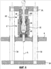 Первая поперечная балка 36 поддерживается неподвижной, и пластина основания 6 способна скользить по паре штанг 34 в направлении, обозначенном стрелкой F, для перемещения от первой поперечной балки 36 вверх к штампу 40, как показано на фиг.2.