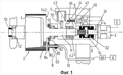 Цилиндр 1 на основании 140 на стороне трансмиссии снабжен впускным отверстием 7. Продольная ось этого отверстия 7 и указанного выше тела 8 равноудалены от оси вращения цилиндра 1.