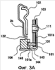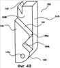 На боковой поверхности 146b сформирован штыревой ползун 143. Как показано на фиг.4В штыревой ползун 143 имеет штыревую поверхность 144 скольжения, которая перпендикулярна боковой поверхности 146b и выступает от нее. Как показано на фиг.4В, штыревая поверхность 144 скольжения имеет наклон относительно боковых поверхностей 147а (фиг.4А) и 147b. Штыревая поверхность 144 скольжения имеет, согласно фиг.4В, криволинейную поверхность 144а и изгиб 144b, и наклон к боковым поверхностям 147а и 147b является переменным. Штыревой ползун 143 становится толкаемой деталью, которую толкает и перемещает штырь 131 толкателя 130 стопора. Конец стопора 104, в котором выполнено сквозное отверстие 141а, и боковая поверхность 147b продолжаются по криволинейной поверхности 145, которая имеет форму дуги по отношению к оси сквозного отверстия 141а. Криволинейная поверхность 145 не дает остальным элементам мешать повороту стопора 104 вокруг сквозного отверстия 141а.