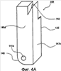 Со ссылкой на фиг.4А и 4В ниже приводится описание стопора 104. На фиг.4А и 4В показаны виды в перспективе стопора 104 с противоположных сторон. Согласно фиг.4А и 4В стопор 104 представляет собой, по существу, стержень квадратного сечения. Сквозное отверстие 141а, проходящее от одной боковой поверхности 146а к противоположной поверхности 146b, выполнено вблизи конца стопора 104. Поворотный вал 141 проходит через сквозное отверстие 141а и через еще одно сквозное отверстие в нижней пластине 101, в результате чего стопор 104 шарнирно соединен с нижней пластиной 101. Стопор 104 расположен между нижней пластиной 101, верхней пластиной 102 и рамой подушки сиденья, и воспринимает резкое опускание рамы подушки сиденья.