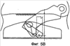 Но на нижнем конце левой боковой рамы 3b, в который упрется оконечный конец стопора 104 в положении согласно фиг.5А, установлена фиксирующая пластина 122. Соответственно, как показано пунктирной линией на фиг.5А, когда оконечный конец стопора 104 упрется в нижний конец левой боковой рамы 3b, то прорезь 142 зацепит зубец фиксирующей пластины 122. При этом стопор 104 будет находиться в наклонном положении между левой боковой рамой 3b и нижней пластиной 101, предотвращая опускание левой боковой рамы 3b.