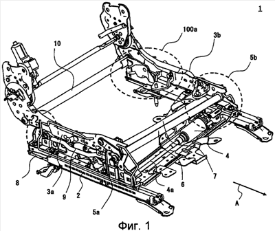 Ниже приводится описание предпочтительного варианта осуществления изобретения. Для упрощения пояснений приводимое ниже описание и прилагаемые чертежи содержат в уместных случаях пропуски и упрощения. На чертежах одинаковые элементы обозначены одинаковыми ссылочными позициями, и их повторное описание, если оно не является необходимым, не приводится. На фиг.1 показан вид в перспективе нижней рамы 1 автомобильного сиденья согласно данному варианту осуществления. Когда нижняя рама 1, показанная на фиг.1, используется в автомобильном сиденье, то стрелка А указывает ее переднюю часть. То есть сидящий обращен в направлении стрелки А, когда он находится на подушке сиденья.