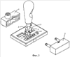Висячий замок 1 и блокирующая защелка 2, которые упомянуты в первом варианте настоящего изобретения, показаны на Фиг.4 и 5, где висячий замок 1 имеет корпус в виде короба с одной открытой стороной, которая обращена к блокирующей защелке 2. Посредине, между верхним и нижним краями открытой стороны, имеются две вогнутости или отверстия 10 и 11, формы которых соответствуют форме рычага управления коробкой передач, такой как форма полукольца. В верхней части имеется отверстие 12 для ключа. В нижней части имеются кромки 13 и 14. Эти кромки не являются прямолинейными, однако совмещаются с зубчатой выемкой в замкнутом положении, как отчетливо иллюстрируется на Фиг.5. Отверстия 14 и 15 защелки используемые для удерживания блокирующей защелки, располагаются внутри корпуса. В средней части внутри корпуса между отверстиями 14 и 15 защелки имеется вогнутость или отверстие 16, которое имеет форму, соответствующую форме половины насадки 3 рычага управления коробкой передач для того, чтобы прочно удерживать насадку 3 рычага управления коробкой передач внутри в положении, при котором она зафиксирована на блокирующей защелке 2. Блокирующая защелка 2 имеет корпус в виде короба, форма которого соответствует корпусу висячего замка 1. Когда это запорное устройство переключения передачи соединяют, приводя в блокирующее положение настоящего изобретения, оно представляет собой прямоугольный короб. В средней части верхнего и нижнего края стороны, обращенной к висячему замку 1, имеются вогнутости или отверстия 20 и 21, формы которых соответствуют форме рычага управления коробкой передач, такой как форме полукольца. Со стороны, обращенной к висячему замку 1, выступают два штыря или аналогичные элементы в качестве блокирующих защелок 22 и 23, предназначенные для введения в отверстия 14 и 15 висячего замка 1. Обе стороны края вогнутости или отверстия 20 имеют кромки 24 и 25 в качестве направляющих граней 27 для закрепления блокирующего устройства на рычаге управления коробкой передач. Средняя часть внутри корпуса между блокирующей защелкой 22 и 23 представляет собой вогнутость или отверстие 26, которое имеет форму, соответствующую форме половины насадки 3 рычага управления коробкой передач для того, чтобы прочно удерживать насадку 3 рычага управления коробкой передач внутри в положении, при котором она фиксируется на висячем замке 1.