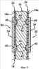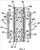С этой целью каждый зубец 44, 58, 60 заострен, в данном случае имеют вид призмы с треугольным горизонтальным сечением, способной делать вырез в стенке элемента 18 подобно пуансону.