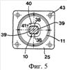 Как лучше всего видно из фиг.4, рядом с передней стороной 34 пластины 11 также выполнена кольцевая канавка, которая ограничена кольцеобразной плоской поверхностью 36 уступа и цилиндрической поверхностью 37. Ширина этой цилиндрической поверхности в предпочтительном случае может соответствовать ширине кольца 32 (поскольку она отсчитывается между плоскими противоположными поверхностями кольца), но может быть немного меньше, чем глубина канавки во фланце 25.
