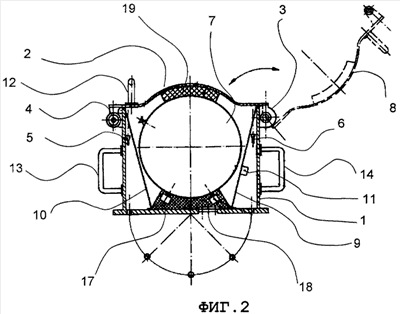 1. Наружное устройство космической станции для приема и закрепления обслуживаемой и инспектируемой платформы, содержащее установленный снаружи космической станции контейнер (1), имеющий закрывающееся отверстие (2) и дверцу (8) для закрытия отверстия (2), снабженную закрывающим механизмом (3), который обеспечивает закрепление выполненной в форме шара платформы внутри контейнера (1).