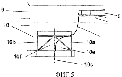 Когда ультразвуковой волновод 5а-b и упор 6 прижаты друг к другу для выполнения сварки, упаковка принимает такую конфигурацию, которая может быть получена, если у обычной упаковки в форме прямоугольного параллелепипеда отогнуть вверх угловые клапаны или отогнуть со дна нижние клапаны, чтобы они выступали горизонтально и чтобы швы выступали из упаковки. На фиг.8 показан вид сверху упаковки 10. Верхние панели 10а-b и угловые панели 10е-f (см. фиг.5) проходят, по существу, параллельно удлинительным элементам 14а-с и обращены вверх, тогда как боковые панели 10e-f обращены вниз.