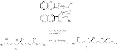 15. P.1596-1597], эфиров, , 17. – P.1905-1908]. Так, селективным гидрированием (R,Е)-аллильного спирта 32 получили (3R,7R)-гексагидрофарнезол 2 с оптической чистотой 99% ее (схема 5).