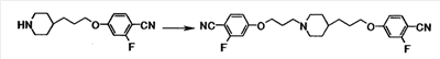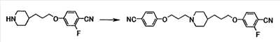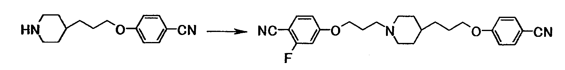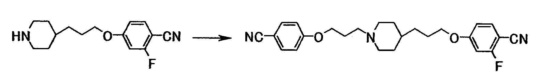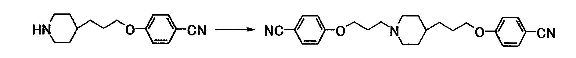 1Н-ЯМР (CDCl3) значение : 1,20-1,45 (5H, м), 1,65-2,05 (8H, м), 2,45-2,55 (2H, м), 2,85-3,00 (2H, м), 3,99 (2H, т, J=6,6 Гц), 4,06 (2H, т, J=6,3 Гц), 5,21 (2H, с), 5,21 (2H, с), 6,91 (2H, д, J=8,7 Гц), 6,93 (2H, д, J=8,7 Гц), 7,20-7,50 (10H, м), 7,85 (2H, д, J=8,7 Гц), 7,85 (2H, д, J=8,7 Гц).