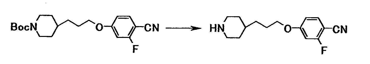 К раствору 0,10 г 4-{3-[4-(3-{4-[амино(бензилоксикарбонилимино)метил]фенокси}пропил)-1-пиперидинил]пропокси}бензамид О-[(2S)-2-(трет- бутоксикарбонил)амино-3-метилбутилил]оксима в хлороформе (10 мл) добавляли при комнатной температуре 2 мл трифторуксусной кислоты, полученную смесь затем перемешивали при указанной температуре в течение одного часа. Растворитель отгоняли при пониженном давлении и затем добавляли 2,9 моль/л раствора хлористый водород/этанол с последующей отгонкой растворителя при пониженном давлении. Полученное твердое вещество суспендировали в диизопропиловом эфире и твердое вещество собирали фильтрованием и промывали диизопропиловым эфиром с получением 0,04 г гидрохлорида 4-{3-[4-(3-{4-[амино(бензилоксикарбонилимино)метил]фенокси}пропил)-1-пиперидинил]пропокси}бензамид О-((2S)-2-амино-3-метилбутилил)оксима в виде белого твердого вещества.